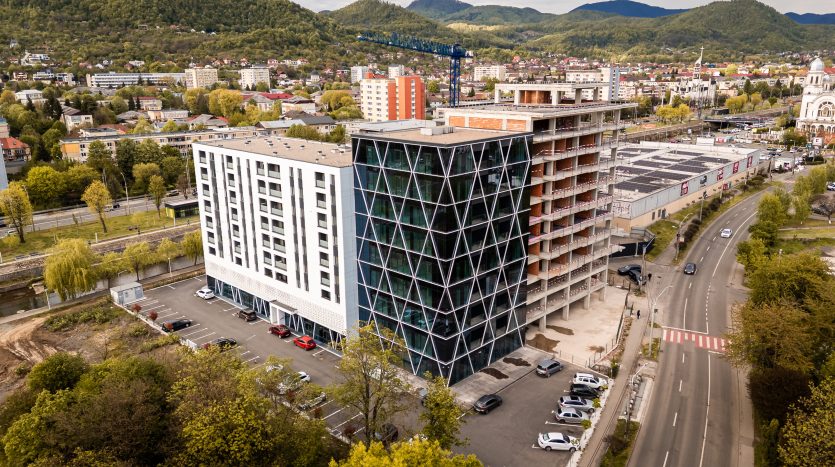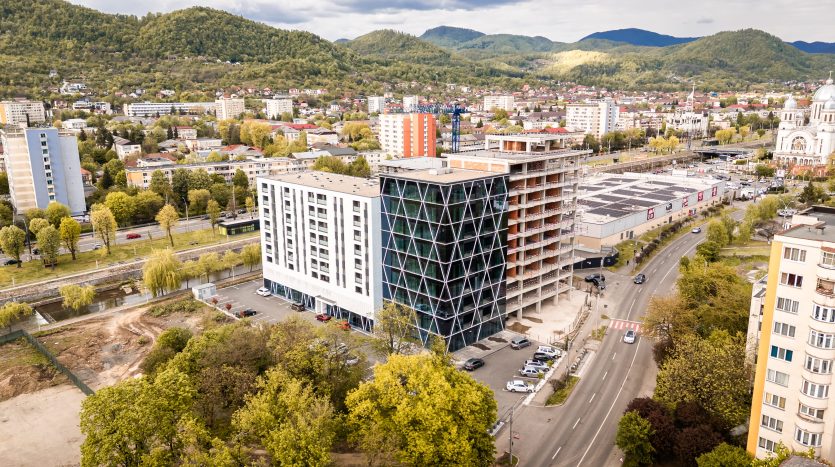 RIVER TOWER Residential Complex, located on George Coșbuc Street no. 42, offers you commercial, administrative and office spaces for rent, ideal for developing your business.